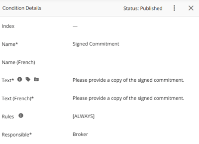 - Conditions marked as Broker Responsible