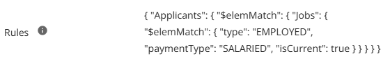 - $elemMatch (The "Find One" Operator): Since categories like Applicants or Mortgages contain lists of data, you use $elemMatch to tell the system: "Check if any item in this list matches these specific criteria".