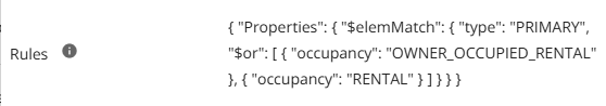 - { "tenure": "CONDO" }: Set the criteria—the tenure must be "CONDO".