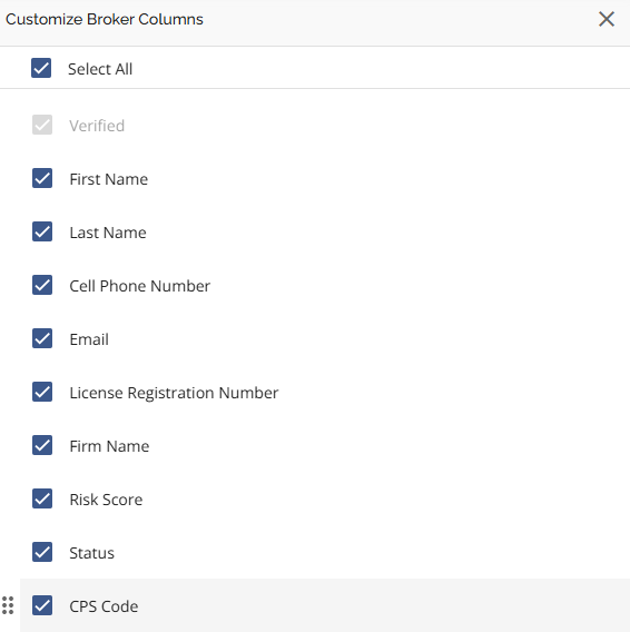 Customize Table Button - This functionality enables users to select the specific columns they want to view in the table and arrange them in their preferred order. Here is a video demonstration of the steps outlined below: Customize Broker Management Table.