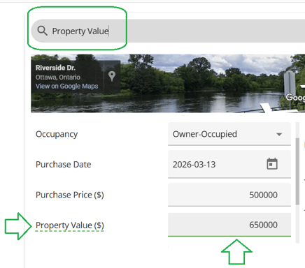 - Select the property you wish to add. You will see that the value auto populates, this is pulling from the data entered in the Net Worth widget.