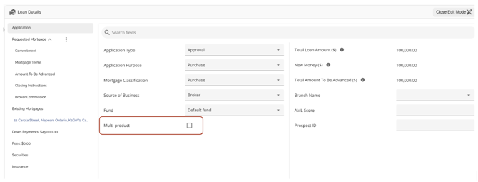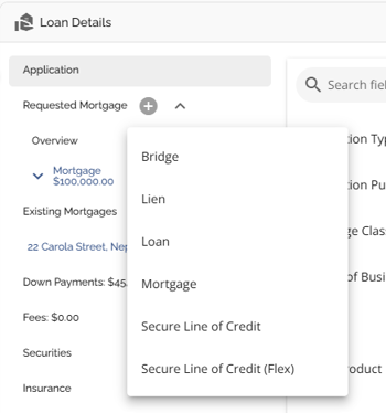 Users can add multiple products and securities to an application. This functionality allows users to have the same or different security connected to a single or multiple products on an application. The exception being that users cannot have multiple securities linked to one mortgage product (blanket mortgage) unless you have the blanket mortgage tenant setting enabled.
