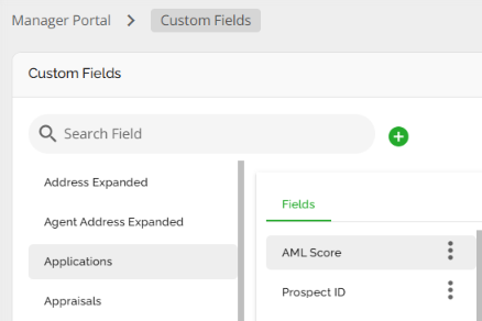 The application entity is one of the few places in the application Lenders can configure Custom Fields. These are configured via Custom Fields in the Manager Portal. Custom fields added in the application entity in the Manager Portal will be identified by an ellipsis to the right as seen below.