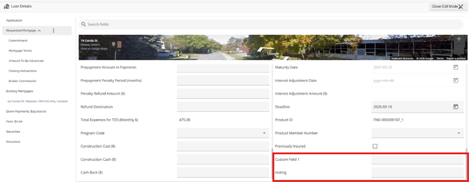 Any that are configured with the Mortgage entity will appear in the Requested Mortgage tab below the hardcoded fields in alphabetical order making it easier to identify them.