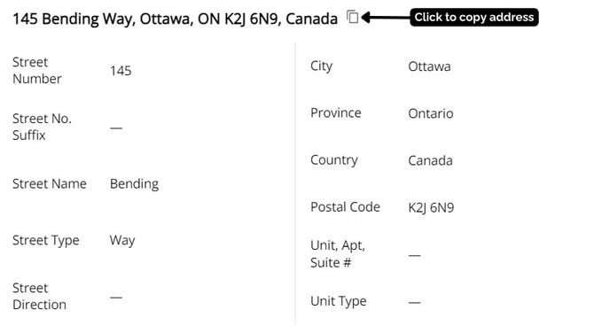 Click on the icon next to the address to copy it.