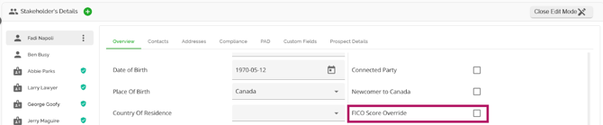 Note: Particular to pricing, the system defaults to using the FICO score of the applicant with the highest income, regardless of their score. However, you have the ability to override this and use the highest score for pricing, regardless of income. This can be done by checking the 'FICO Score Override' checkbox in the Stakeholder widget during the application process. If you select this option for a specific stakeholder, the system will consider the highest score between the primary borrower and that stakeholder as the main FICO score for pricing.