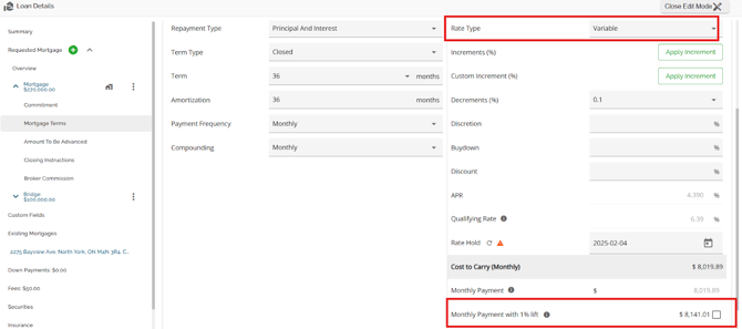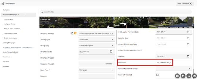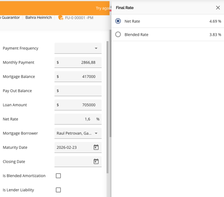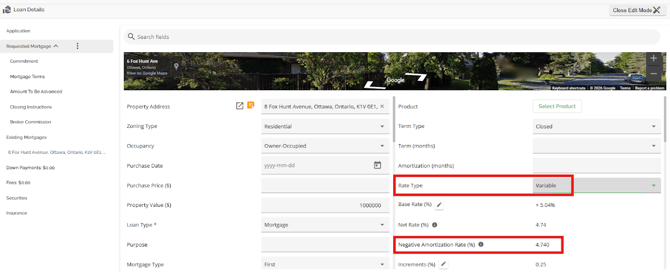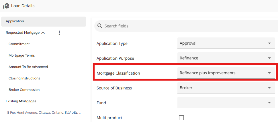 Note: The Rate Type field from Finmo submissions that previously appeared as "Variable" is now mapped to "Adjustable" in FundMore during ingestion. This ensures that the correct rate type is reflected in the UI and reporting, addressing issues where "Variable" was incorrectly displayed due to the absence of an Adjustable option in the Finmo dropdown.