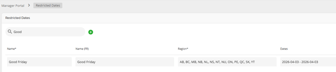 Closing Date / Restricted Dates