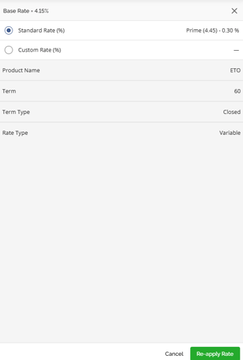 The rate and terms of your selected product may automatically update depending on the level of configuration.