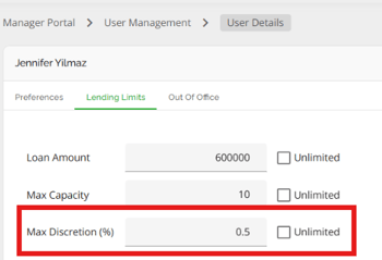 The ability to view this tab is dependent on automation in the Settings tab at the company level. To view this tab, the company would need to enable the “Enable expanded lending limits in user preferences” automation in the Manager Portal.