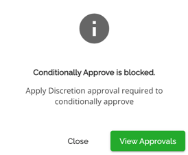 It is important to carefully read the information in this pop-up as the text may vary depending on how the products have been configured in the Manager Portal and the date within the application. For example, if there is no matching terms or rates in the product set up, you might see something like: