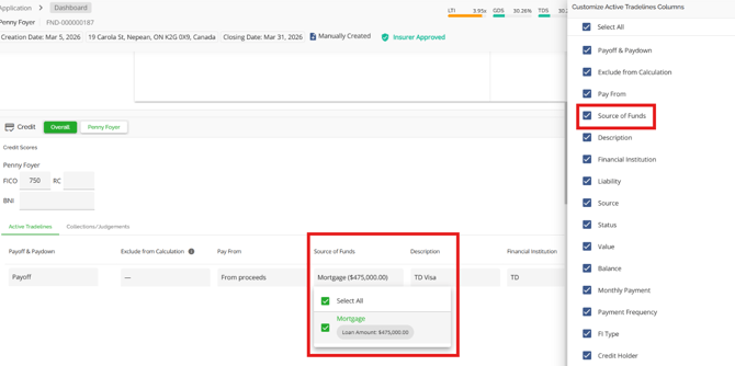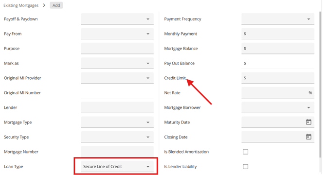 Existing Mortgages Display Credit Limit on LOCs