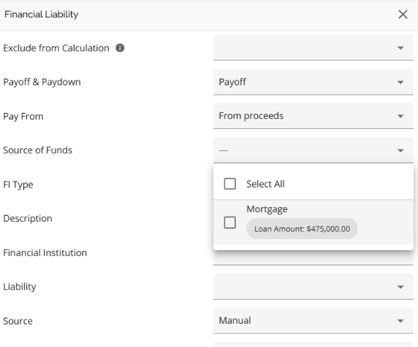 Link liabilities to mortgage product