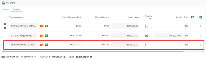 ) in the Requested Mortgage tab in Loan Details or in the property tab within the Net Worth widget in the details column. For all other properties owned, you can access the details through the Net Worth widget in the "Property" section.