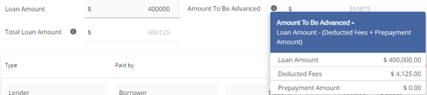 An asterisk beside the labels in the Loan Type and Loan Amount fields indicates that these fields are mandatory.