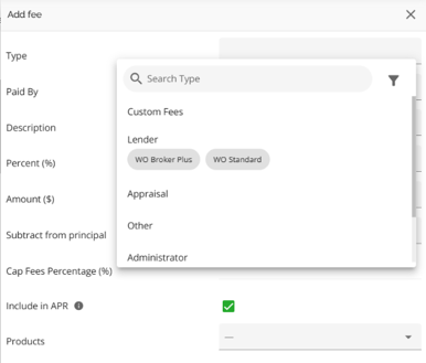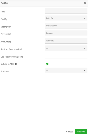 - Default fees will be applied based on how they are configured in the Manager Portal. There are some algorithms in particular with respect to the Product, Credit Tier, Term type and Purpose fields that determine how the system identifies which default fees to apply at ingestion, product selection, and product change.