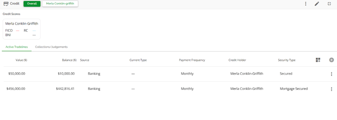 When you check the lending aggregates section, you will see the tradelines are listed per the security type that came over from the banking system: