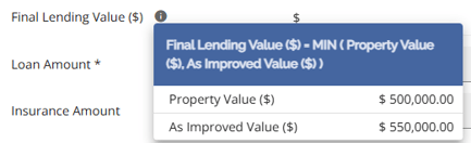 The LTV calculations will use Final Lending Value instead of Property Value in LTV calculator