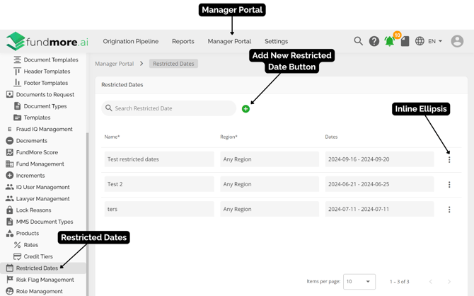 Restricted dates are a critical feature that allows admin users to configure dates that cannot be selected as closing dates, ensuring compliance with regional holidays and other restrictions. This feature provides flexibility as restricted dates may change year to year and vary by region. Implementing restricted dates helps streamline operations, prevents scheduling conflicts on public holidays, and ensures accurate closing date selection. This guide will walk you through the configuration and management of restricted dates within our software.