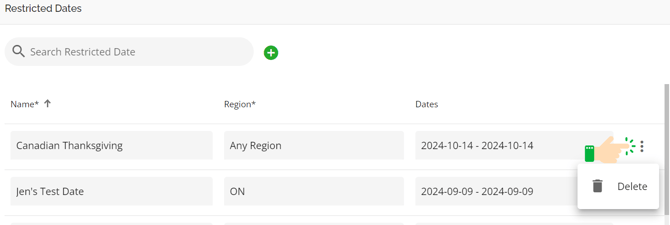 Ellipsis - Clicking on the ellipsis opens up the option to delete a restricted date entry.