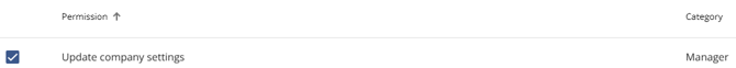 Update company settings - This permission allows users to configure the company settings in the Settings section of the Manager Portal. It is important to note that this will only work if the Manage System Configuration permission is enabled.