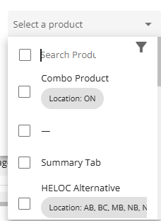 Users also have search and filter capabilities where search allows you to start typing a value and the drop down list will populate with any values matching your search criteria and filtering allows you to filter by Province. The search and filter functions enable you to narrow down your options quicker than scrolling through the list particularly when you have a significant number of products.