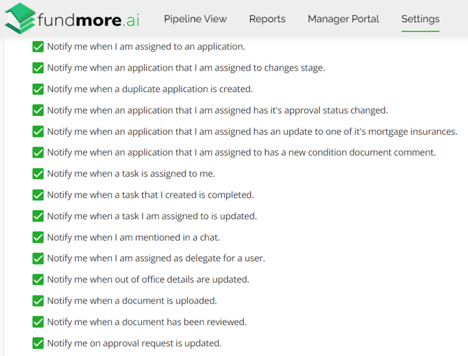 If you are not receiving email notifications through the FundMore platforms, please review the notifications settings in your user profile to ensure the checkbox is checked on for receiving notifications based on the appropriate platform actions.