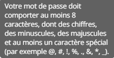 Si vous oubliez votre mot de passe de connexion, vous pouvez facilement le récupérer en cliquant sur le lien « Mot de passe oublié » situé sous le champ du mot de passe. Un lien vous sera envoyé par e-mail pour définir un nouveau mot de passe. Le nouveau mot de passe doit comporter au moins huit (8) caractères et contenir au moins une (1) lettre majuscule, une (1) lettre minuscule, un (1) chiffre et un (1) caractère spécial.