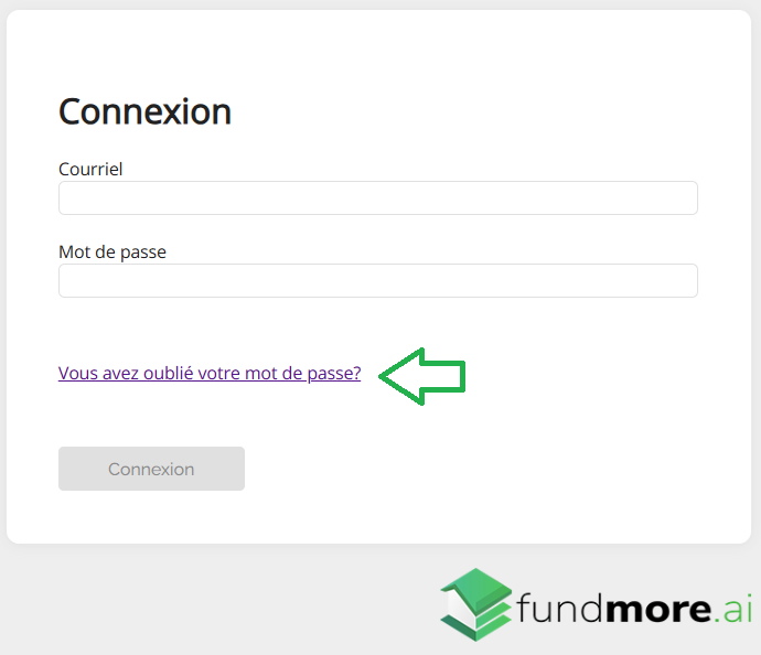 Pour vous connecter à FundMore AI, rendez-vous sur app.fundmore.ai ou sur l'URL spécifique attribuée à votre entreprise. Lorsque vous y êtes invité, saisissez votre nom d'utilisateur et votre mot de passe, puis cliquez sur le bouton « Connexion ». Si vous utilisez un gestionnaire de mots de passe, vous pouvez également saisir les identifiants que vous avez enregistrés dans celui-ci. En fonction de la configuration de votre système, vous pouvez être invité à saisir un code d'authentification à deux facteurs. Ce code peut être reçu par SMS ou via une application d'authentification disponible dans la boutique d'applications de votre appareil.